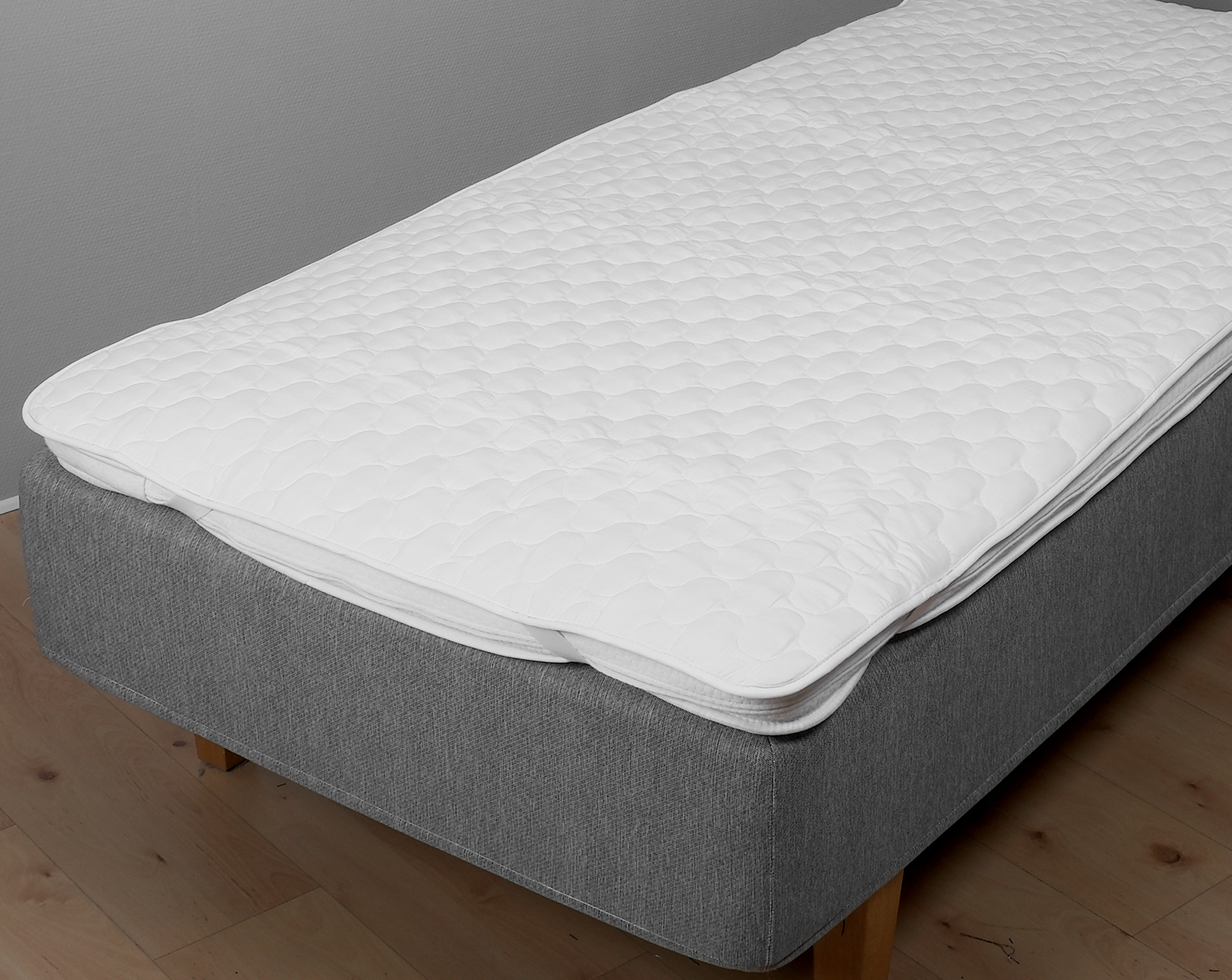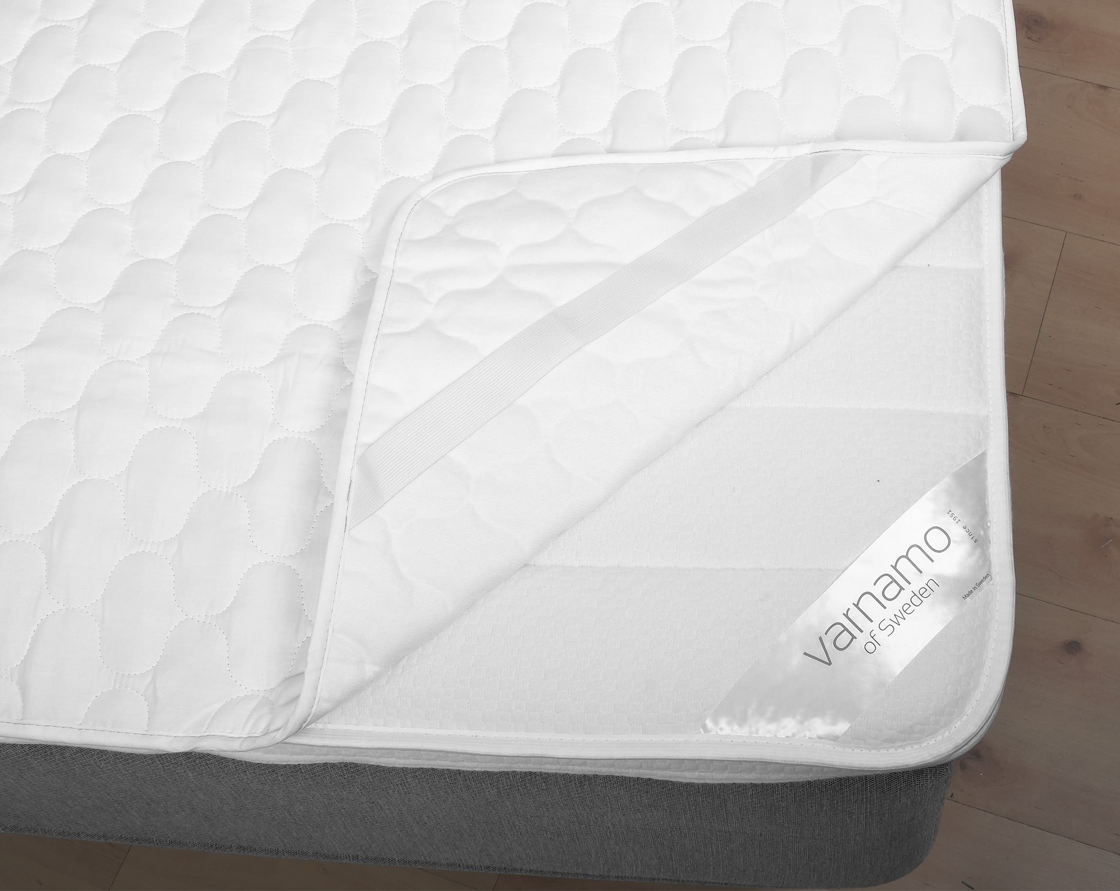 Elastic bands in the corners that keep the mattress protector in place.